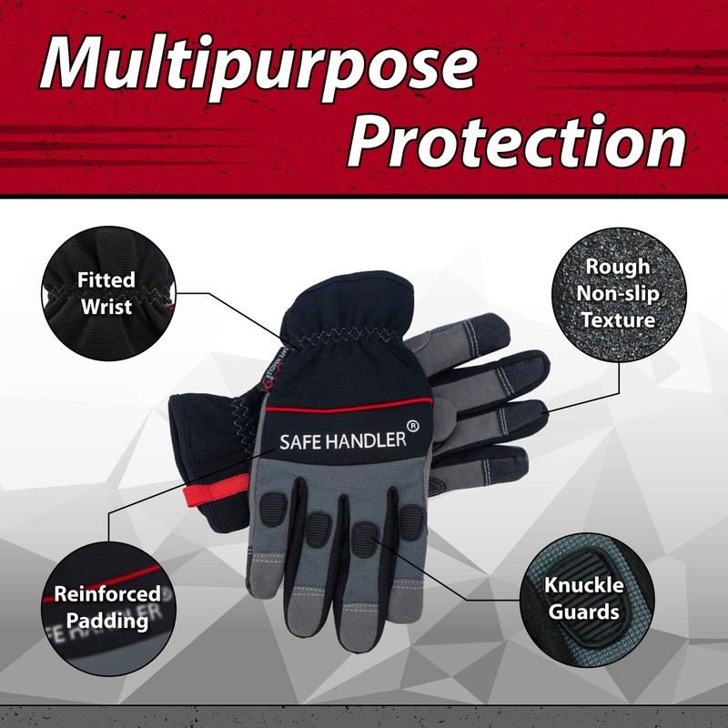 SAFE HANDLER Tough Pro Grip Gloves | Knuckle Guard, Thick Protection, Non-Sli...