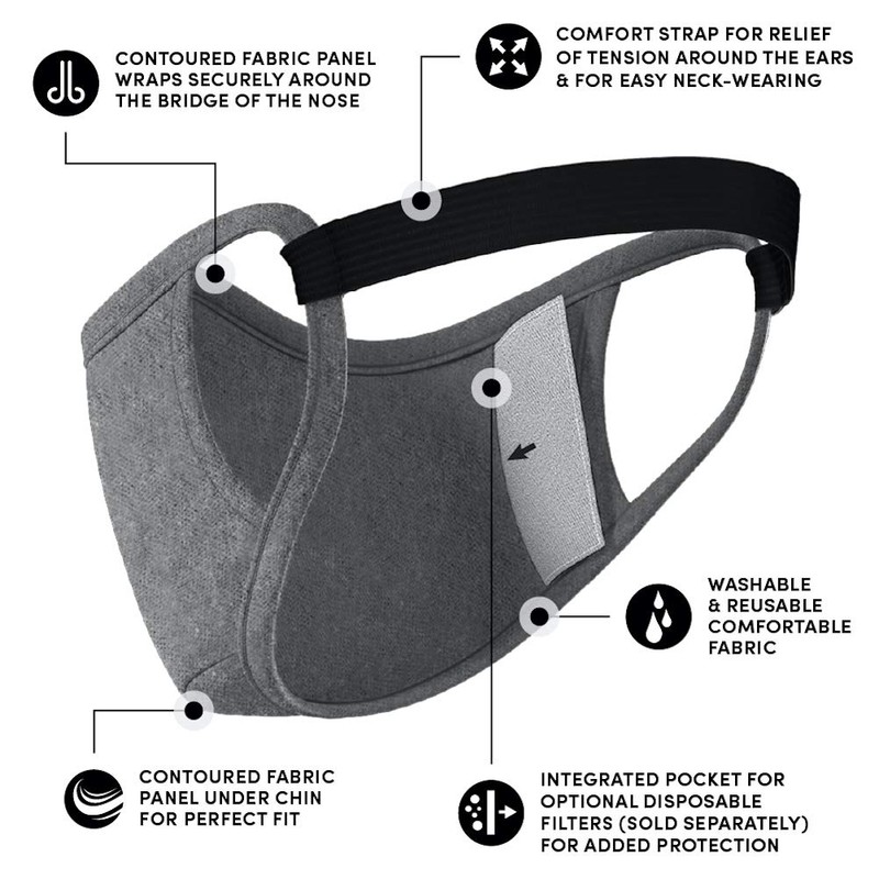 Safe+Mate x Case-Mate - Cloth Face Mask (51 Pack) Washable & Reusable - Adult S/M - Cotton - Includes Filters - Black/Navy/Gray