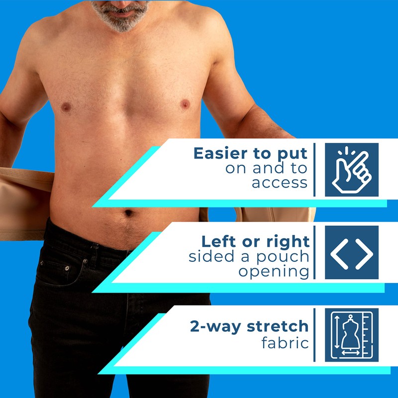 - HERNIA SUPPORT BELT - Our belt for hernia abdominal women and men and is available without a pouch opening for hernia protection. The Colostomy hernia belt features an internal anti-slip pad to secure the area around the pouch.