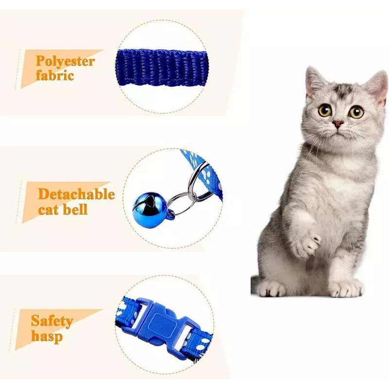 This paw print collar is suitable for cats and dogs. It is made with high-quality nylon material, and you will always know where your furry friend is with the attached bell. The safety buckle ensures that your pet will not be able to weasel their way out!