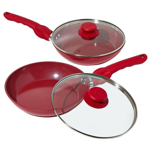 Safe-T-Grip 2-Pack 9" Ceramic Nonstick Frypans – RED