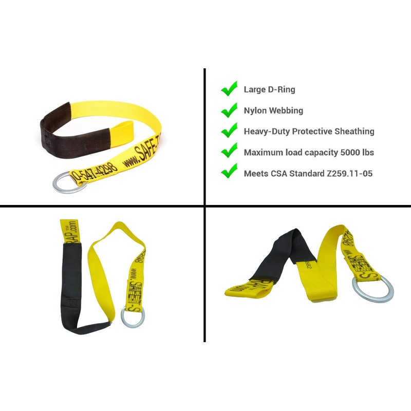 Safe-T-Strap High Rise Cross Arm Strap with Large D-Ring and Pass Thru Loop Ends - Fall Arrest Fall Protection Safety Harness Lanyard Tie Down Concrete Anchors (4-Foot)
