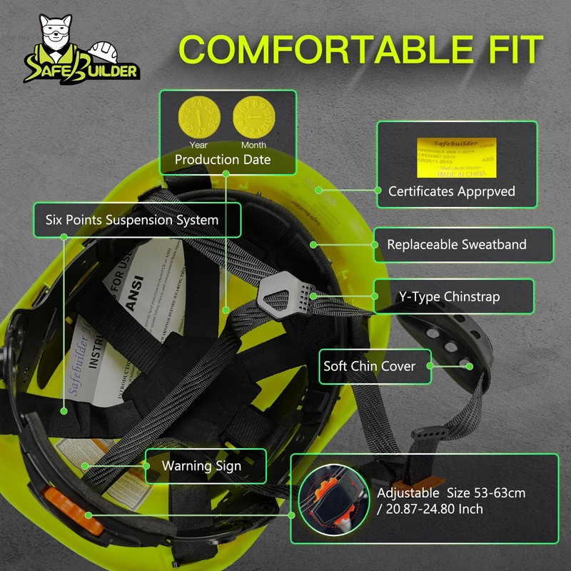 - Comfortable Fit# CR06 Hard Hats with 6-points suspension, Good at Shock Protection when workers work in danger, Great Protection For Head. Head size adjustable range is 53-63cm/ 20.87-24.80 inch,Safety Earmuffs Adjustable to Fit well for Hearing Protection
