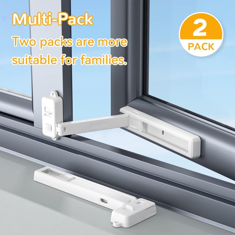 • ☀ Detachable & Practical---Suitable for inward opening windows, outward opening windows, and lower hanging windows. Our window stops are removable, just unlock the latch when you want to open the window fully as usual. Two packs are more suitable for families.