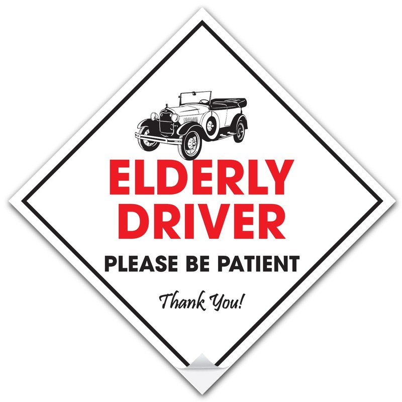 SAFESIGN Elderly Driver Please Be Patient Car Sign Bumper Stickers - Water Proof Conforms to EN ISO 7010:2012