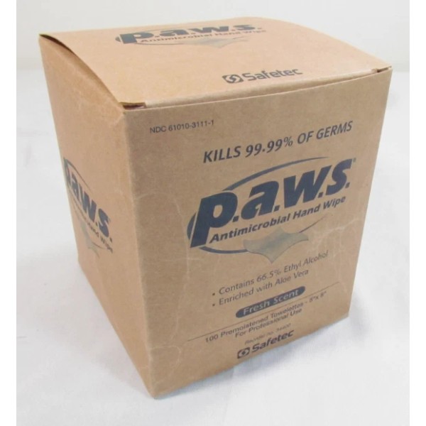 Safetec 34400 Paws Antimicrbial Hand Wipe - 100/BX