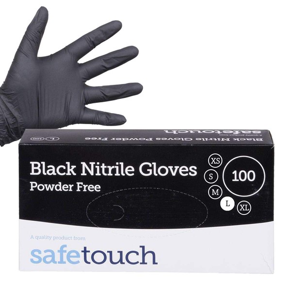 SafeTouch 50000253 Black Nitrile Gloves AQL 1.5, Size Large-Box of 100