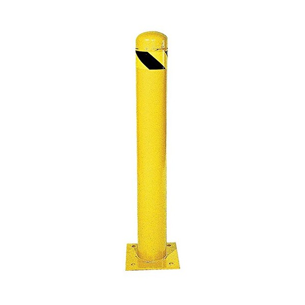 - Price For: Each Color: Safety Yellow Item: Bollard Overall Height: 42" Outside Dia.: 4-1/2" Wall Thickness: 0.125" Mounting Dimension: Spaced 6" on center Mounting Plate Dimensions: 8 x 8 x 3/8" Material: Carbon Steel Mounting Surface: Hard Surface Bollard Function: Fixed Cap Shape: Round Lighted: No Locking System: None