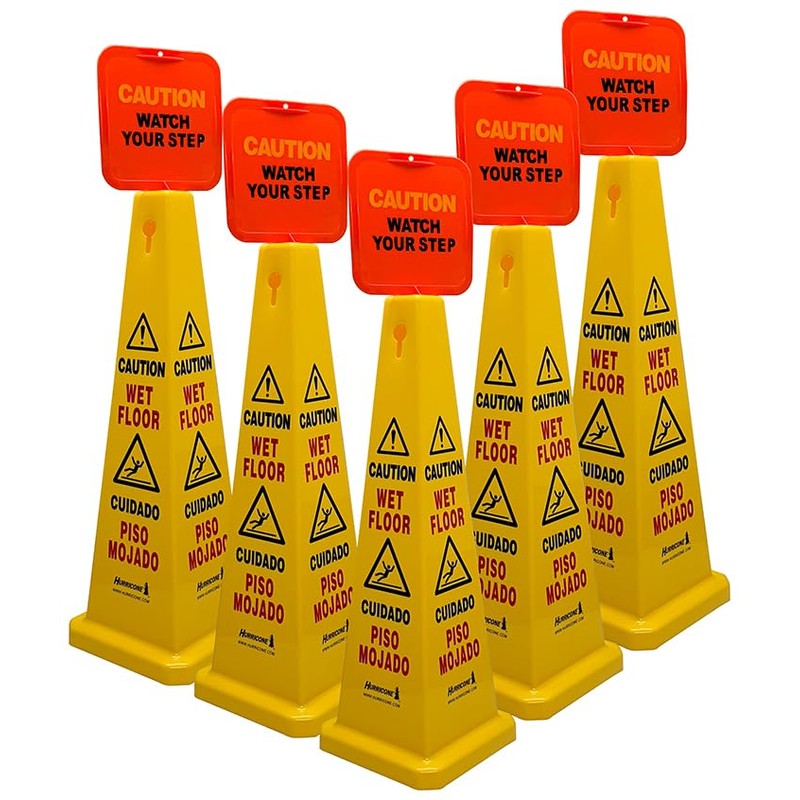Safety Cone - 5 Pack - 36" Four Sided Yellow "Caution Wet Floor" Sign Includes Red Stop Sign "Caution Watch Your Step"