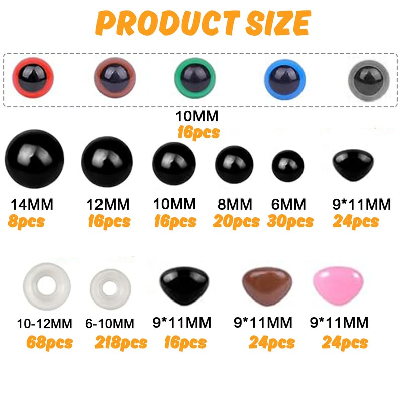 - 【Easy to Store】 All safety eyes and noses are stored in a storage box according to color and size, you can easily find the one you need, not easy to lose, very convenient, keep all your safety eyes and noses in order