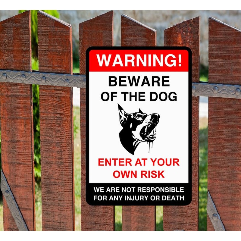 • Warning beware of the dog "enter at own risk" - Indoor/outdoors Safety Sign to meet legal obligations and foster compliance.