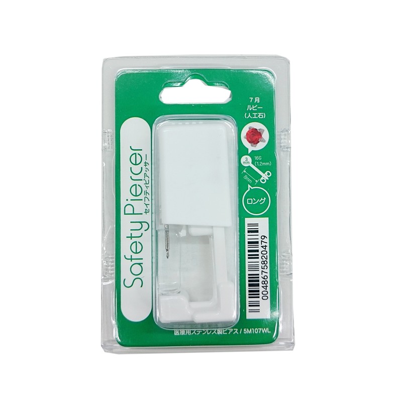 Safety Piercer, Birthstone, Sterilized, Long Type, Piercing, 16 Gauge, July: RUBY