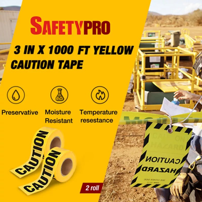 High Durability Tape- SafetyPro Yellow Caution Tape is 3 inches wide but 1000ft long, can be cut to any length for any needs, and set up enough barricades, warning areas, or large decorative areas when you need them. This is a must-have warning tape for workers and people, and a great addition to your toolbox or home.