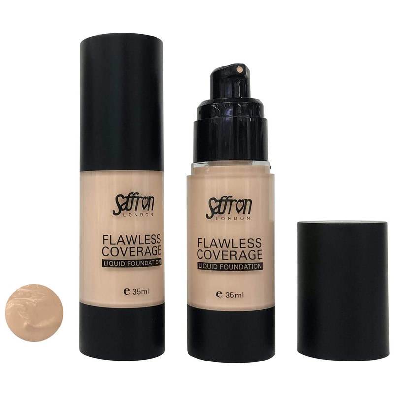 - Saffron Flawless Liquid Foundation that provides buildable coverage helps even out skin & impart a glowing, satin finish