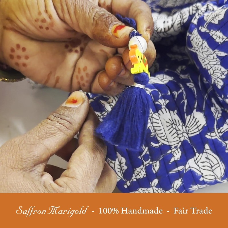 - Premium Quilted Cotton Fabric - Crafted with high-quality quilted cotton fabric, these makeup bags offer a soft, durable, and stylish solution for storing your essentials. The floral block printed designs on this makeup organizer bag add a touch of elegance to your travel accessories.