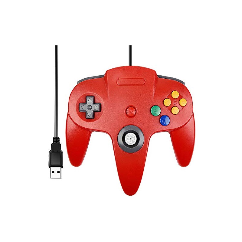 SAFFUN [USB Version] Classic N64 Controller, N64 Wired USB PC Game pad Joystick, N64 Bit USB Wired Game Stick for Windows PC MAC Linux Genesis Raspberry Pi Retropie Emulator [Plug & Play] (Red)