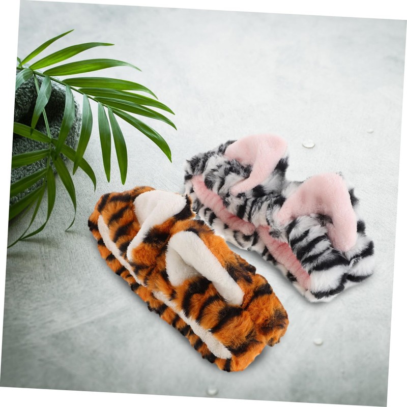 SAFIGLE 2 Pcs Cute Tiger Ears Headband Makeup Face Wash Hair Wraps for Women Elastic Spa Accessories Prints for Skincare Routine