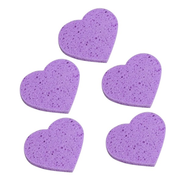 SAFIGLE 5pcs Heart Shaped Facial Sponges: Soft Makeup Remover Pads Reusable and Gentle on Skin for Face Cleansing Exfoliating Violet