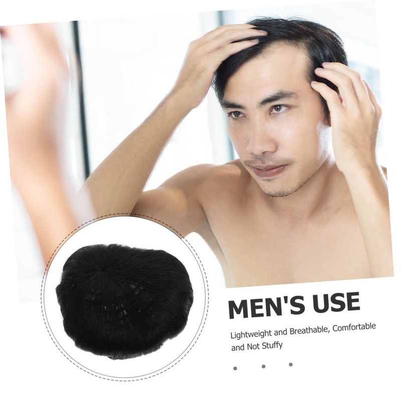 SAFIGLE Men Black Hair Wig Realistic Human Hair Topper for Baldness Coverage Lightweight Breathable Design for Everyday Use for Confidence