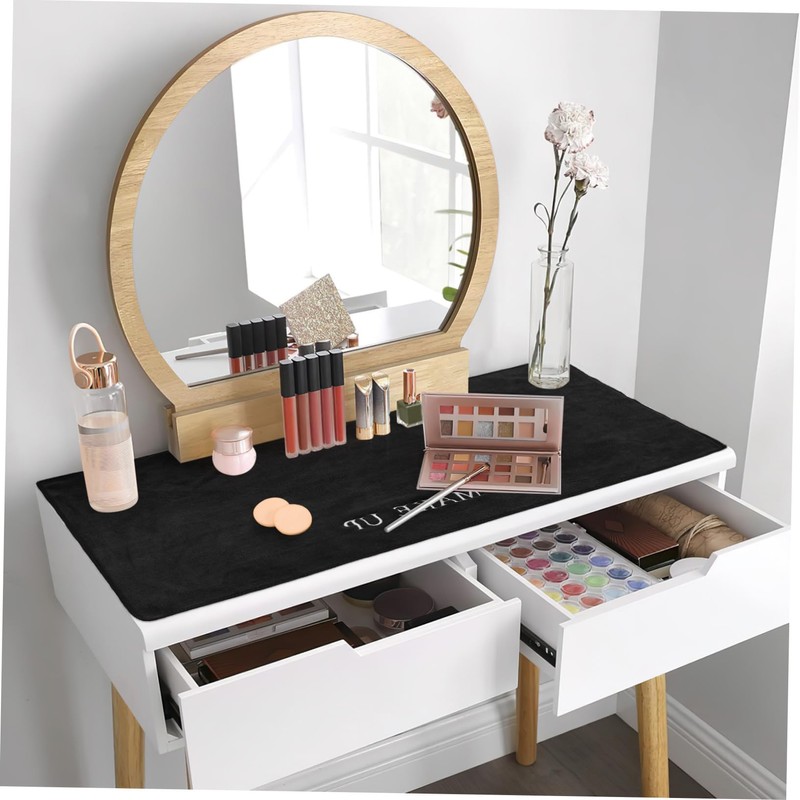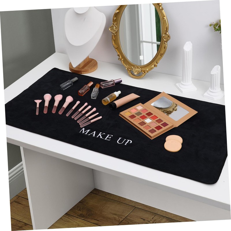 makeup table mat The non-slip bottom ensures stability and prevents the cloth from sliding, protecting your makeup table from scratches and damage.home makeup mat Its versatility extends beyond makeup tables, making it suitable for office desks, dining tables, and other settings.reusable Vanity mat The sleek design adds a touch of sophistication to any makeup table or workstation, complementing various styles effortlessly.workbench mat Elevate the look of your makeup table with this makeup mat.bedroom makeup mat Crafted with stable materials, it provides a luxurious and comfortable experience