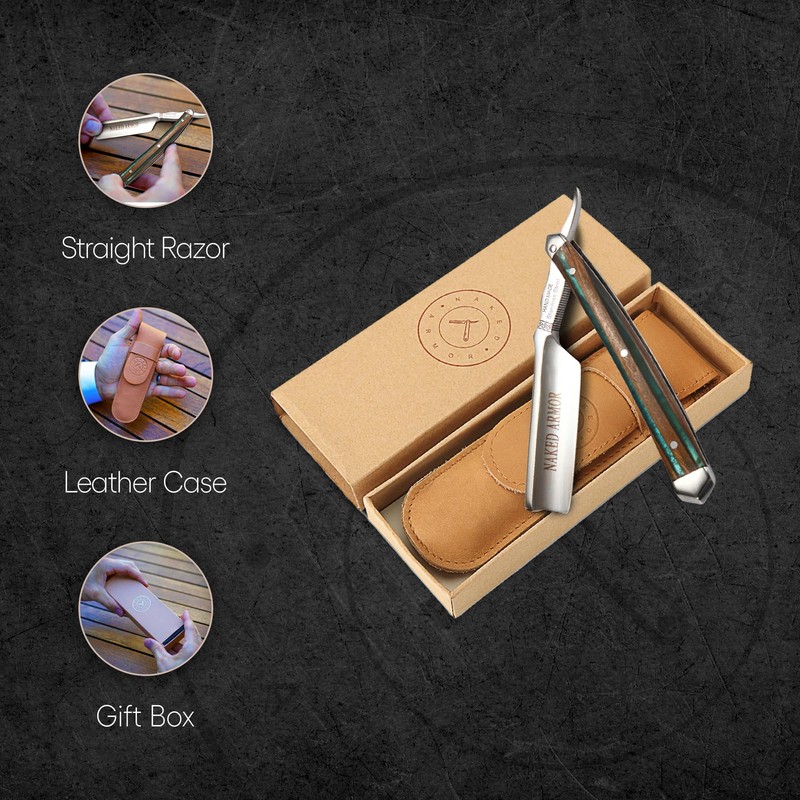 - 🎁 PERFECT GIFT FOR DAD, HUSBAND, BROTHER - Naked Armor mens straight razor is the perfect men's gift for the stylish man in your life. Give the gift of looking good, feeling great, and being irresistibly handsome with his new straight edge razor. Naked Armor facial hair straight razor includes a leather travel case. Wood, leather, and steel come together in this beautiful samurai straight razor that will last for decades.