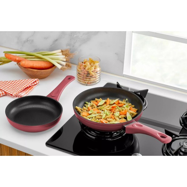 Saflon Titanium Nonstick 2-Piece Frying Pan Set PFOA Free, Dishwasher Safe (Red)