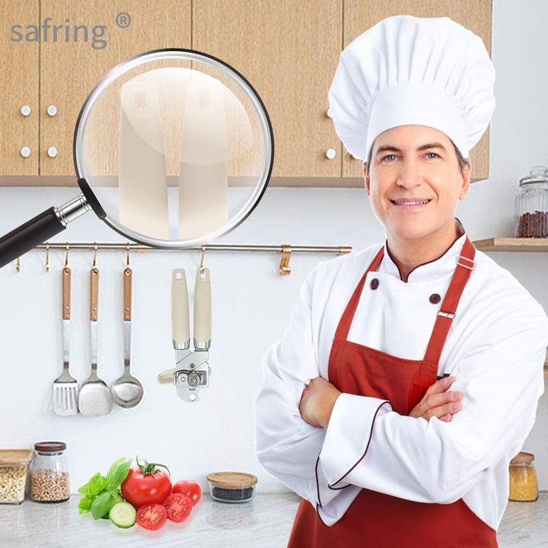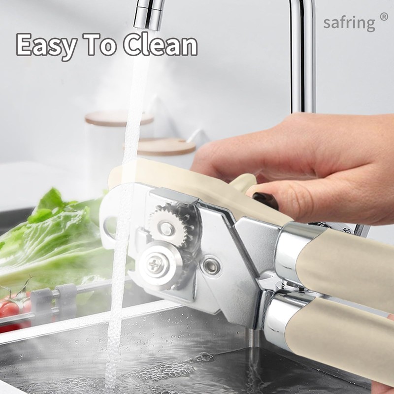 Safring Can Opener Manual, Handheld Strong Heavy Duty Stainless Steel Can Opener, Comfortable Handle, Sharp Blade Smooth Edge, Can Openers with Multifunctional Bottle Opener, Beige
