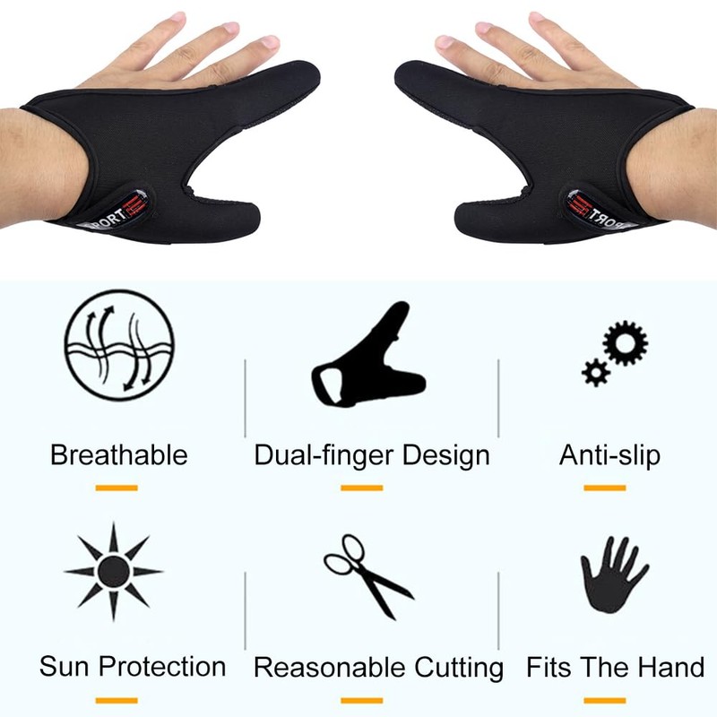 - 【Flexible Fingers】Breathable fishing gloves are designed to worn by two fingers, the material is soft, fit and comfortable without affecting the movement of fingers, whether it is catching the bait, adjusting the line or tying the knot can be done easily, flexible fingers will not affect the fishing efficiency.