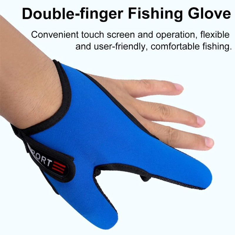 SagaSave 2 Pcs Double Finger Protector Fishing Gloves Portable Breathable Fishing Gloves Adjustable Wrist Strap Anti-Slip for Outdoor Fishing(Blue)