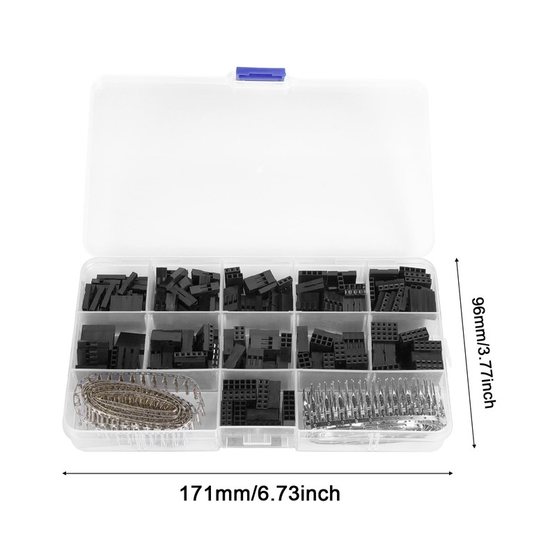 - PRODUCT SPECIFICATION Includes 620pcs of the most common dupont pin shell connectors and male/female JST SM 2.54mm pitch 1/2/3/4/5/6 crimp pins, 200pcs female crimp pins, 200pcs male crimp pins, 10pcs 2x6, 10pcs 2x5, 10pcs 2x4 , 10 pcs 2x3, 10 pieces 2x2, 20 pieces 1x6, 20 pieces 1x5, 20 pieces 1x4, 20 pieces 1x3, 40 pieces 1x2, 50 pieces 1x1, suitable for Arduino prototype shield.