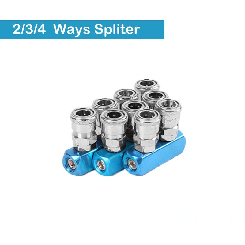 SagaSave Aluminium Air Compressor Splitter, 2-Way Quick Connect Distributor Fitting Air Hose Splitter Coupler