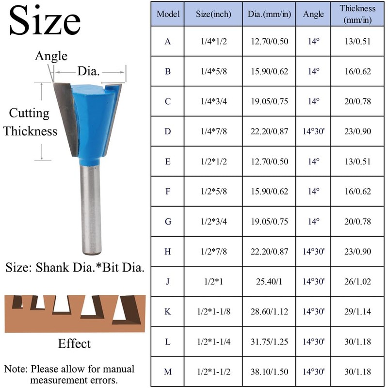 - 【Wide Compatibility】Designed for versatility, this dovetail router bit fits various woodworking machines. It adapts seamlessly to 1/2'' shank trimmer, carving machines, and more, delivering outstanding cutting performance