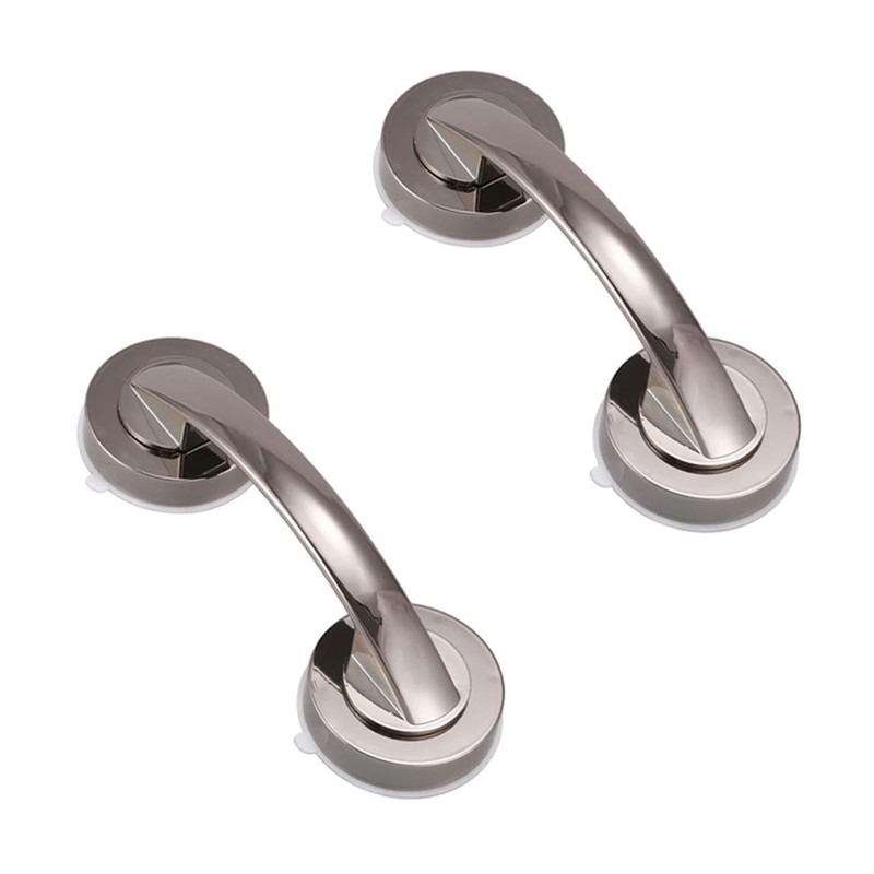 SagaSave Suction Cup Grab Bars for Bathtubs & Showers, Safety Bathroom Assist Handle, Bathroom Safety Bar for Seniors, Elderly, 8.66 Inch Shower Handle Strong Suction Grab Rails (Silver 2Pcs)