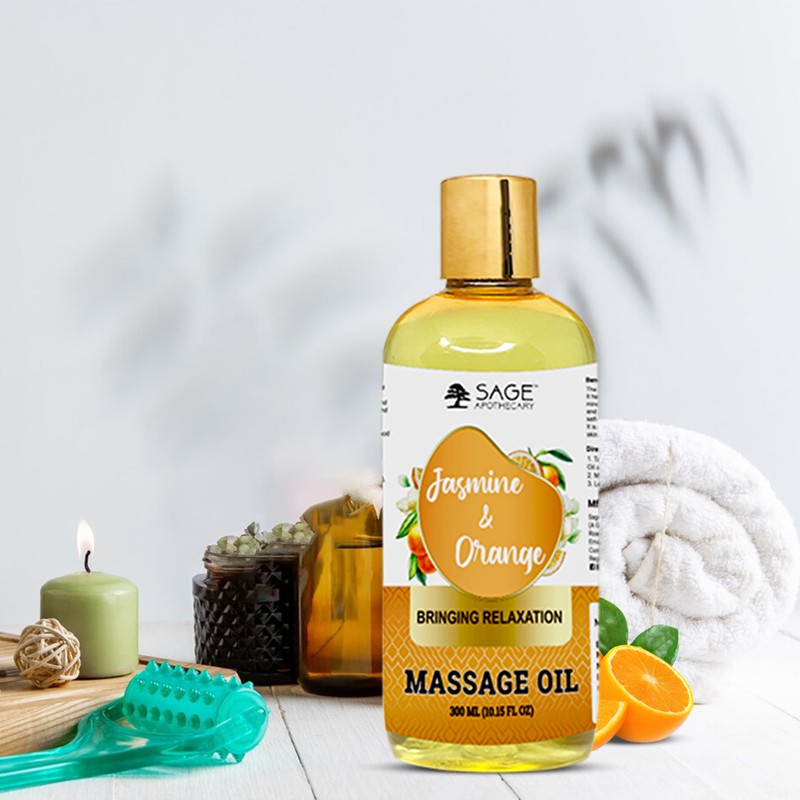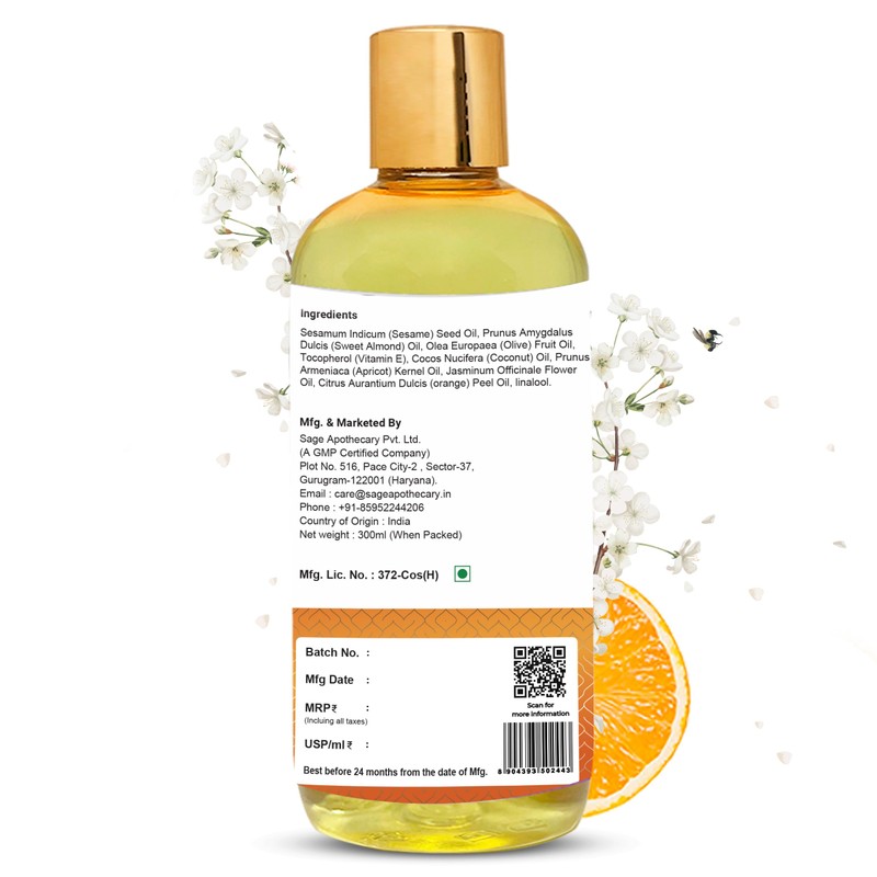Sage Apothecary Orange Jasmine massage oil for Relaxed & Replenished Skin | No Parabens & Sulphates | Cruelty Free & Vegan 300 ml