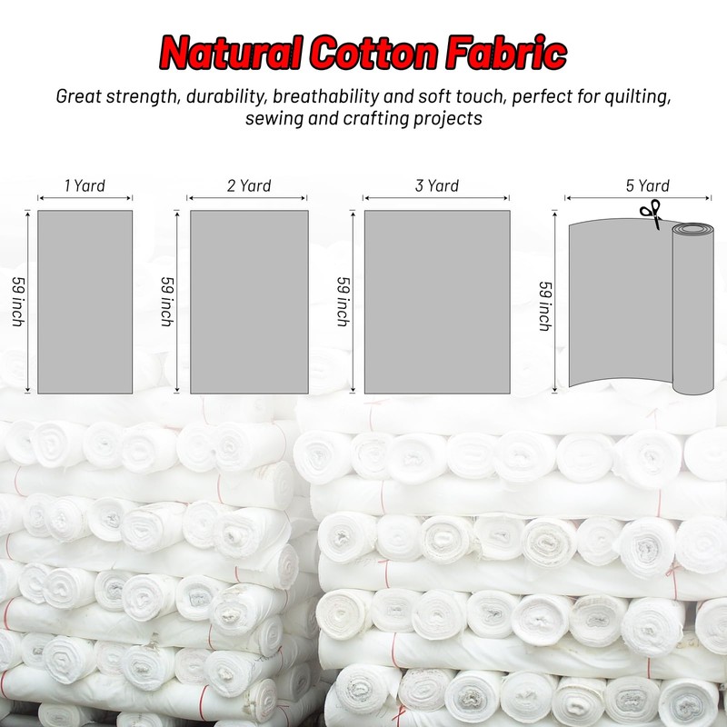 - Cotton Fabric: Full Width 59"(149cm) and multiple length size to choose from(such as 1 yard, 2 yard, 3 yard 5 yard etc.), natural medium weight natural cotton muslin fabric.