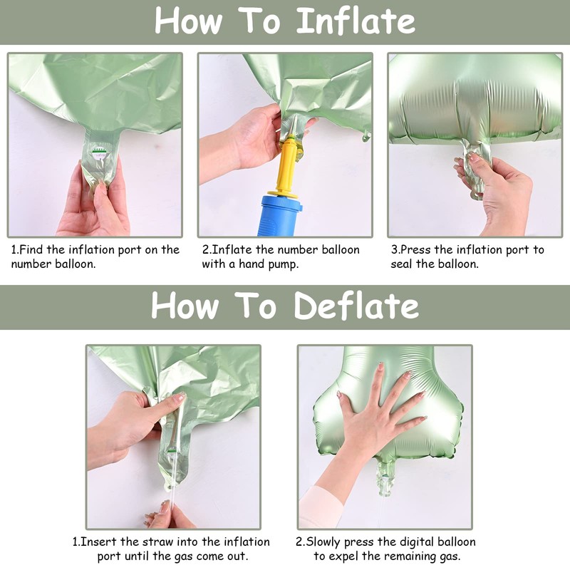- ๐ Repeated Use ๐ - The sage green number 40 balloons kit contains a straw that can be used to deflate the foil balloon, simply insert the straw into the valve and press gently until the gas is completely expelled. After use, it can be folded and stored for reuse.