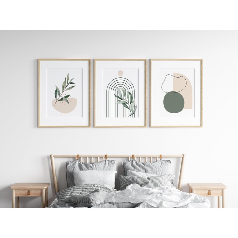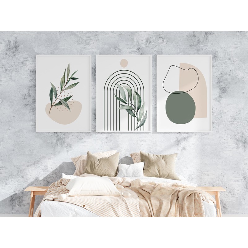 Sage Green Wall Art | Set of 3 Wall Prints | Boho Home Decor | UNFRAMED | A3, A4 (A4)