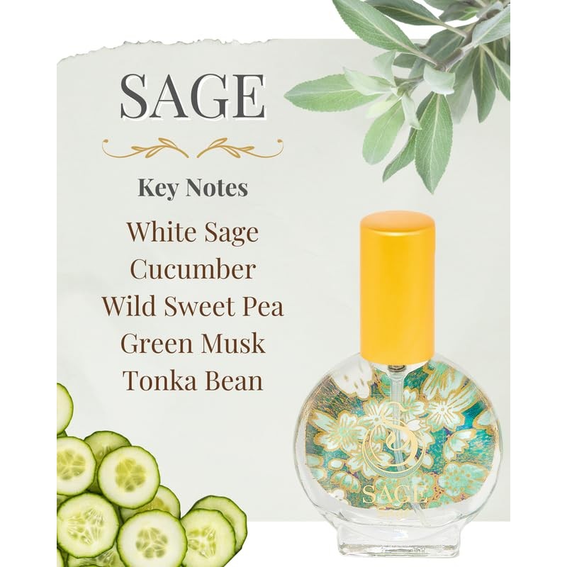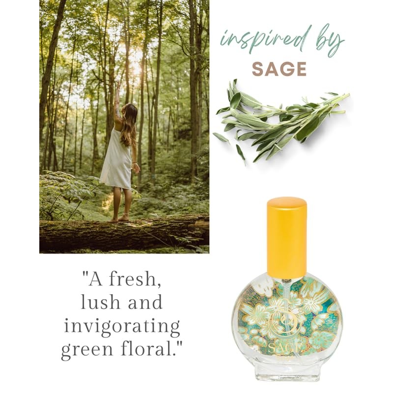 Sage Organic Mini Perfume Spray by Sage- 1/2 oz, Vegan & Cruelty-Free, Fresh Scent, Cucumber, White Sage, Sweet Pea