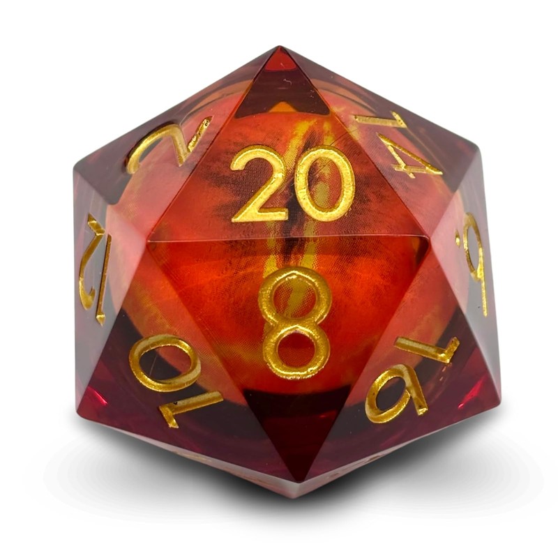 Sage's Portal Liquid Core Eyes Dice 33mm D20 Die with Glass core for DND Dungeons and Dragons Pathfinder RPG TTRPG (Eye of The Red Serpent)
