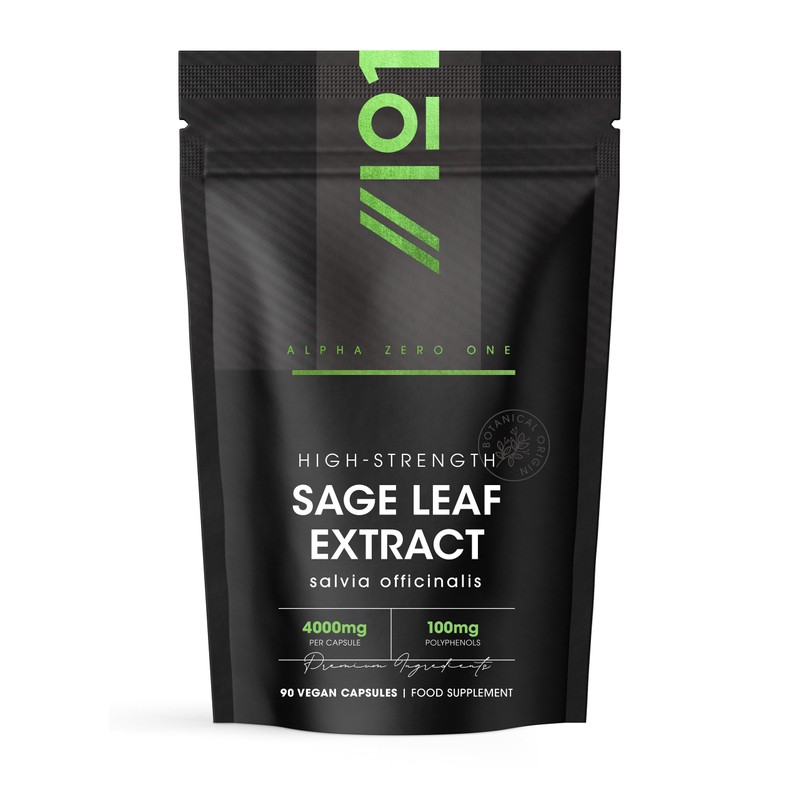 Sage Tablets for Menopause 4000mg – Standardised 20% Polyphenols (100mg) – 90 Vegan Capsules (3 Months Supply) – Resealable and Recyclable Pouch by Alpha01