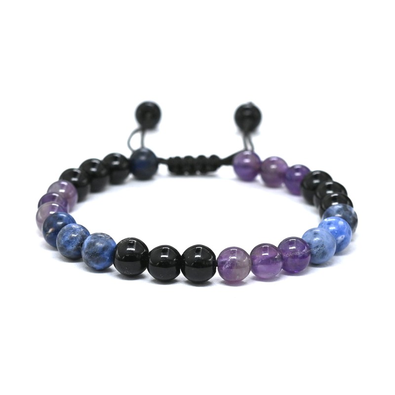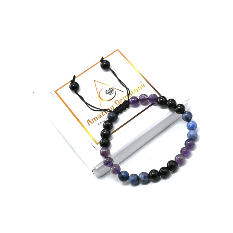 - Bracelet for birthstone contains real crystal beads Amethyst, Black Obsidian and Sodalite. Amethyst for Serenity, Black Obsidian for Positivity & Sodalite for Understanding.