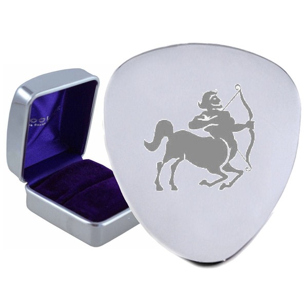 Sagittarius Zodiac Star Sign Steel Guitar Plectrum Pick Engraved in Box