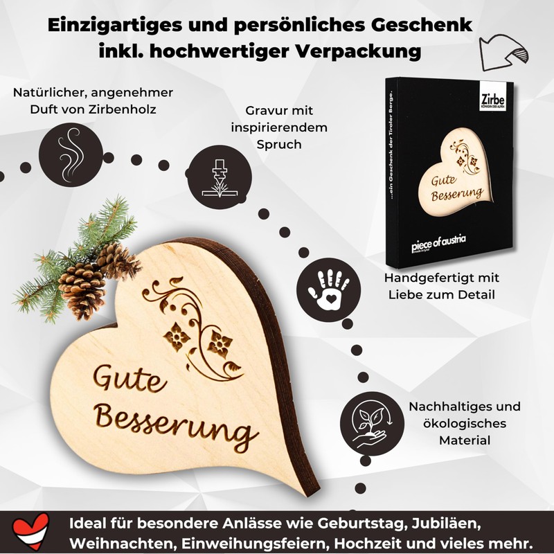 - Dimensions: packaging: approx. 10 x 13 cm and approx. 1.5 cm deep pine heart: approx. 7.5 cm x 6.5 cm and 1 cm thick