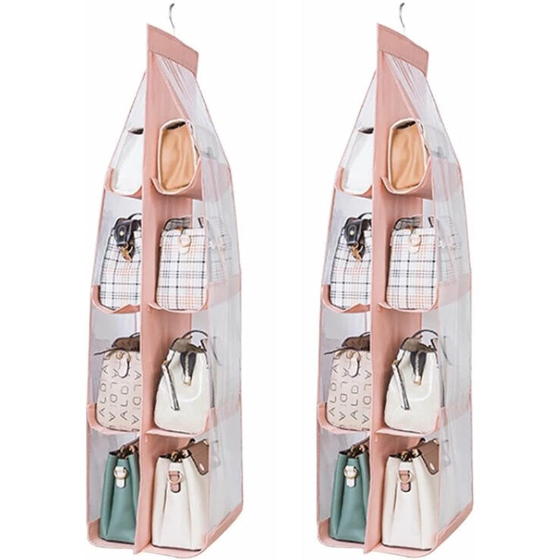 Sagreeny 2 Pack Hanging Purse Organizer, Thickened Oxford Cloth+PVC, 8 Grid, Pink