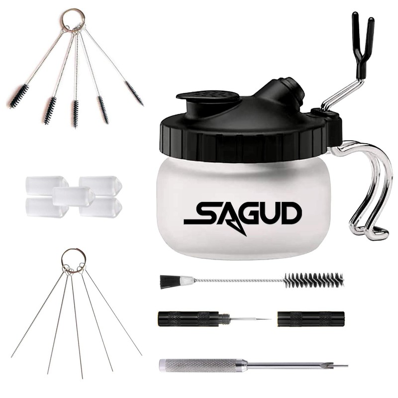 Sagud Airbrush Cleaning Kit with Cleaning Brushes, Washing Brush Needles, Airbrush Clean Pot Glass Airbrush Cleaning Pot with Holder