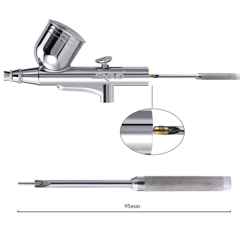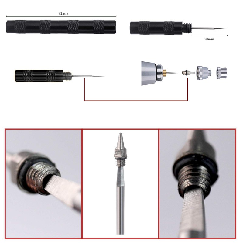 - Airbrush cleaning kit included: 1 x airbrush glass cleaning pot, 1 x 5-piece nylon brush set, 1 x 5-piece stainless steel needle set, 1 x black spray nozzle washing needle for airbrush gun, 1 x double-sided brush, 1 x airbrush repair tool, 5 x airbrush needle protection covers