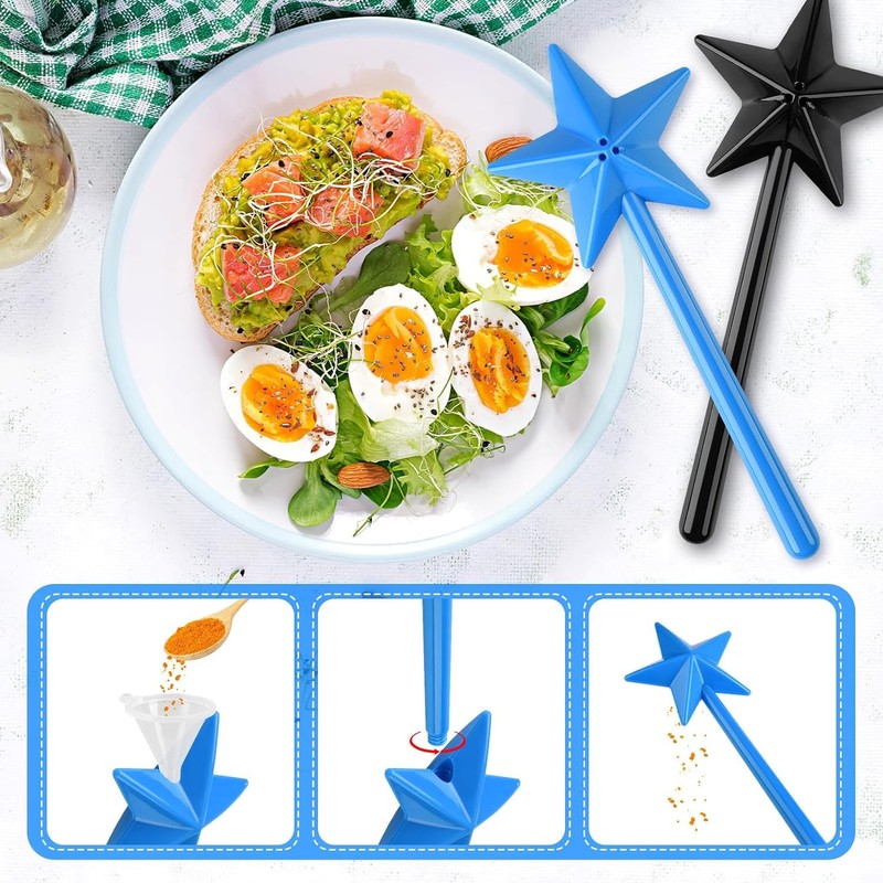 - 【Package Offer】2-piece set of star-shaped stick salt shakers and pepper shakers, available in black, blue and pink, can match different kitchen atmospheres or party decorations. Each family member can receive their own wand to add to the excitement at mealtime. Fun and interactive.
