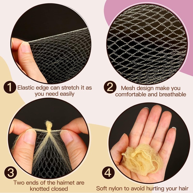 - Diseño razonable: el paquete de ballet es fácil de usar, el diseño del borde es muy elástico, adecuado para diferentes formas de cabeza y longitud del cabello, no te hará sentir tenso. El diseño de la malla es más ligero y transpirable, y es cómodo de usar durante todo el día.