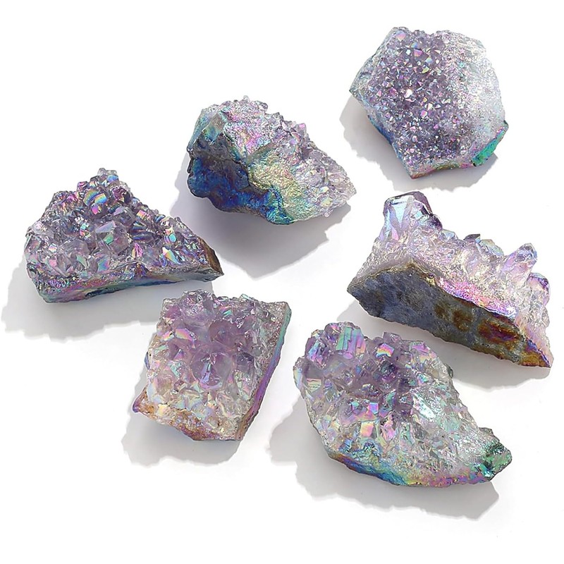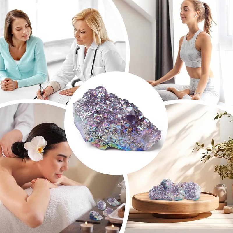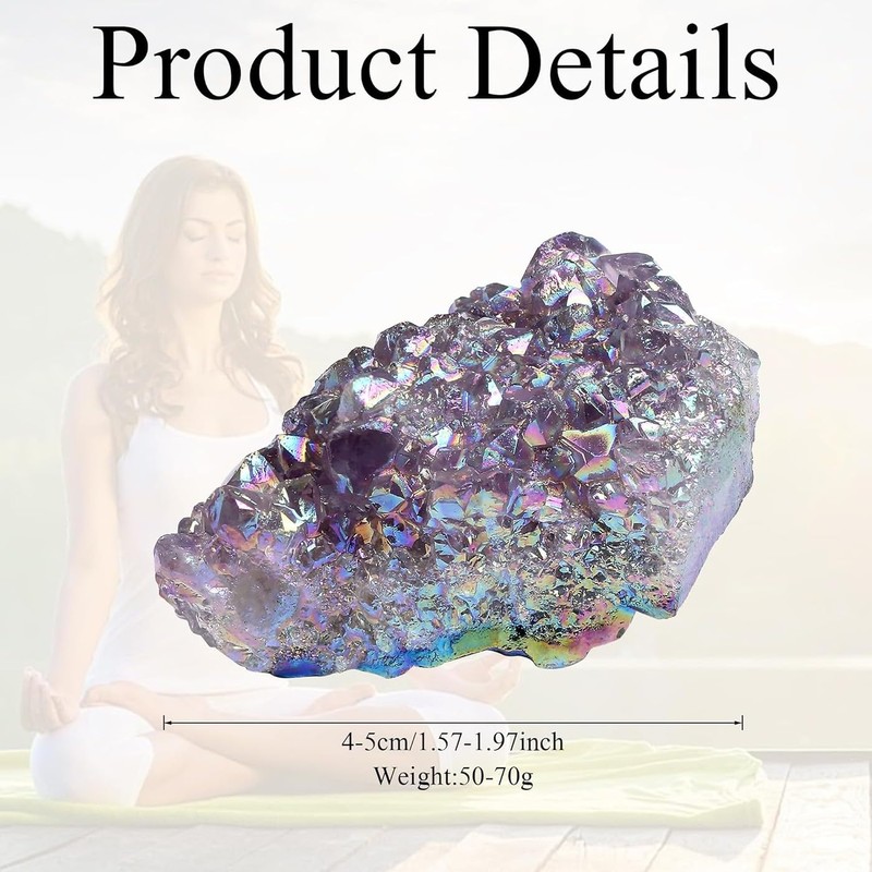 - [CRYSTAL GEODE CLUSTER] Quantity: 1PC.Weight: 50-70 grams.Each angel aura amethyst crystal cluster is made of high quality raw crystal stones.Crystal clusters are suitable for divination,meditation and decoration.