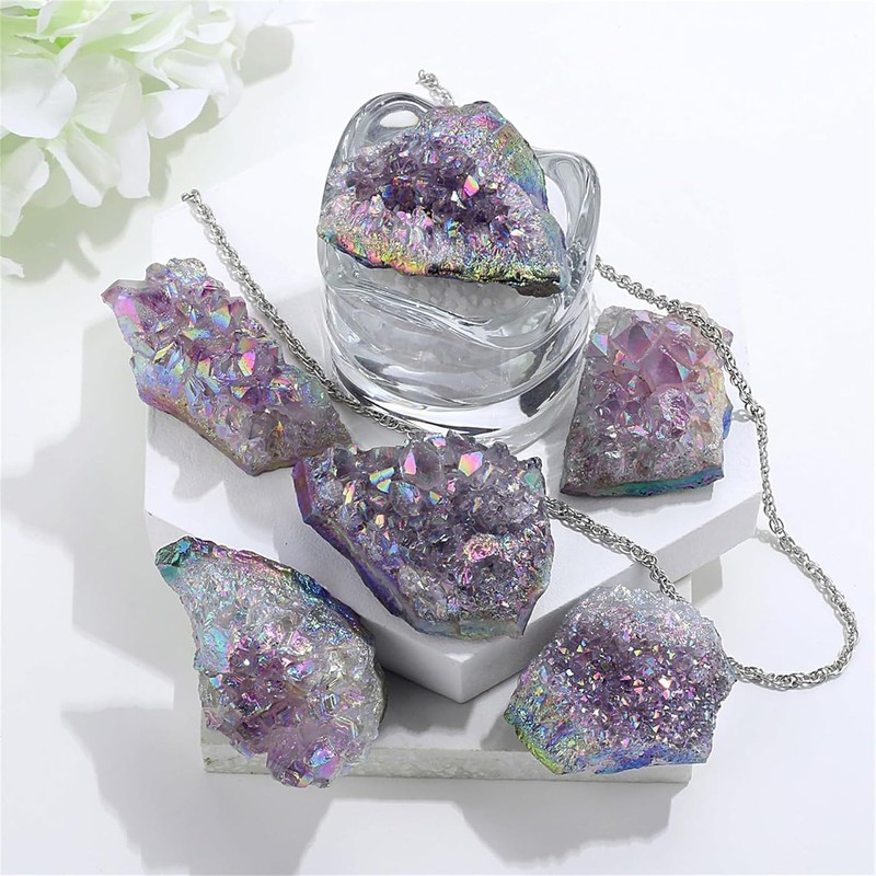 SAHOOTTIE Amethyst Angel Aura Quartz Titanium Coated Mineral Crystal Amethyst Geode Amethyst Cluster Crystal Amethyst Rock Mineral Druzy Geode Mineral Purple Crystals Rock Raw Crystals